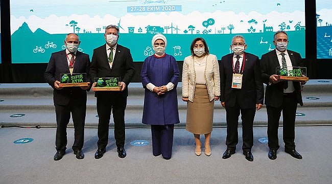 Cumhurbaşkanı Recep Tayyip Erdoğan’ın eşi Emine Erdoğan’ın himayelerinde Çevre ve Şehircilik Bakanlığı ile Türkiye Belediyeler Birliği tarafından düzenlenen ‘Sıfır Atık Fikir Yarışması’nda ‘Organik Atıkları Kompost Haline Getirip Doğada Kolay Çözünür Poşet Üretme Projesi’ ile ödüllendirilen Talas Belediyesi’nin ödülünü Ankara’da düzenlenen törende Başkan Yalçın aldı.