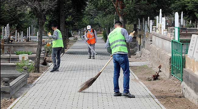 Bayram öncesi çalışmalarını hızlandıran Talas Belediyesi, başta camiler ve mezarlıklar olmak üzere ilçe genelindeki genel temizlik ve çevre düzenlemesi hazırlıkları gerçekleştirdi.