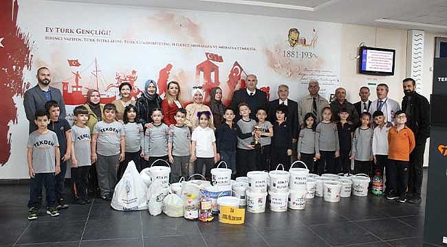Talas Belediyesi, atık pil toplama kampanyasına katılan okulların biriktirdikleri pilleri teslim almaya başladı.