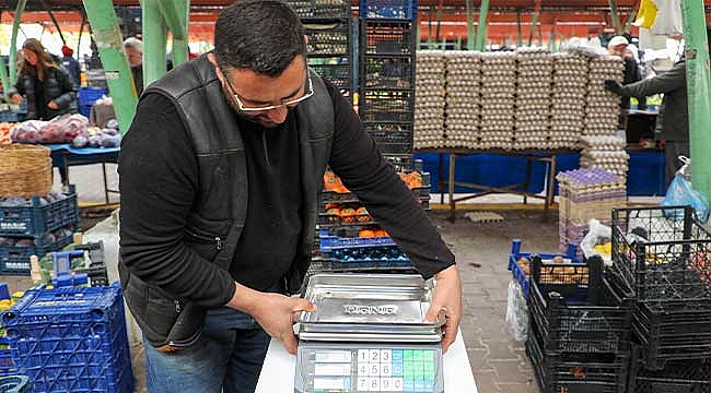 Talas Belediyesi, ölçü ve tartılarda hak kaybı yaşanmaması amacıyla ilçe genelinde kurulan pazarlardaki esnafa terazi altlığı hediye etti.