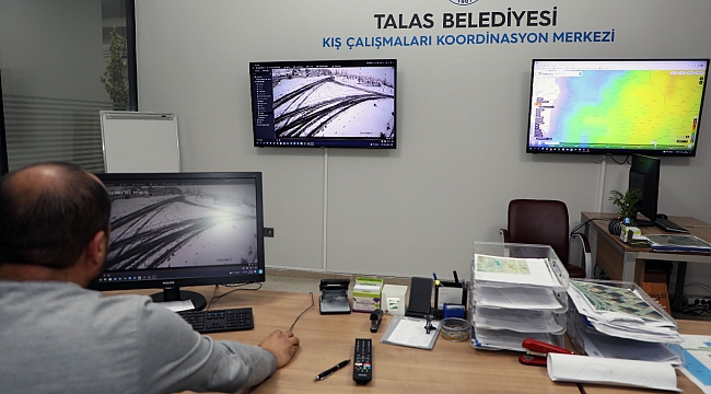 Talas’ın 22 kırsal mahallesini gösteren kameraları izleyen ekipler, ulaşımın aksamaması adına gece gündüz nöbet tutuyor.