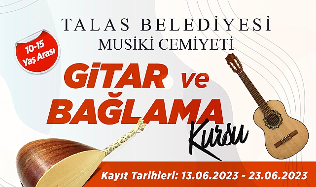 Talas Belediyesi bünyesinde kurulan Talas Musiki Cemiyeti’nin çocuklara yönelik bağlama ve gitar kursuna kayıtlar başladı.
