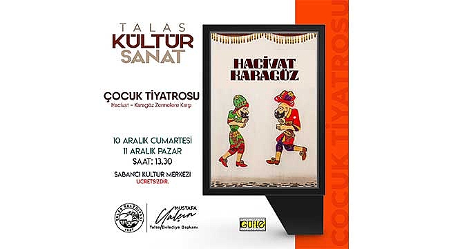 Talas Belediyesi tarafından düzenlenen ve Aralık ayı boyunca devam edecek olan kültür-sanat etkinlikleri başlıyor. Programın ilk etkinliği büyük-küçük herkesin vazgeçilmezi arasında adını yazdıran Hacivat-Karagöz perde oyunu olacak.