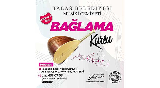 Talas Musiki Cemiyeti’nin Ali Saip Paşa Caddesi girişinde bulunan kurs merkezinde verilecek bağlama kursuna sadece kadınlar katılabilecek.