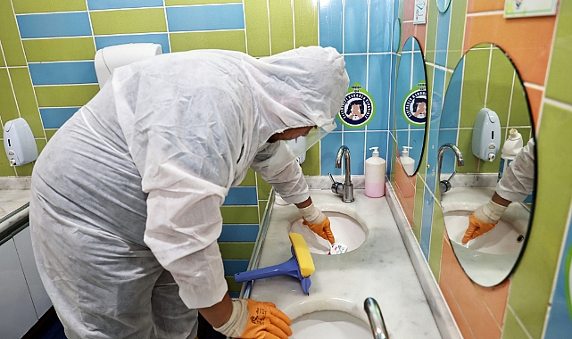 Talas genelindeki 59 eğitim kurumunun tamamı için kolları sıvayan Talas Belediyesi ekipleri, okullarda hijyen çalışması gerçekleştiriyor.