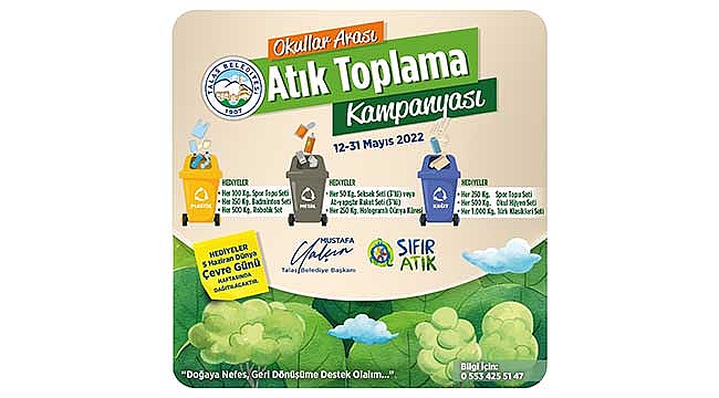 Talas Belediyesi tarafından “Doğaya Nefes, Geri Dönüşüme Destek Olalım” sloganıyla okullar arası atık toplama kampanyası başlatıldı.