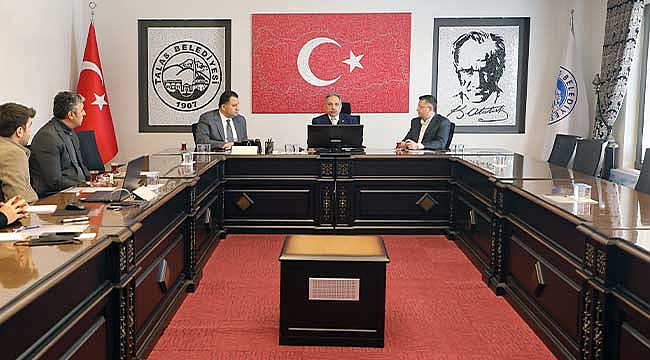 Başkanlık Toplantı Salonu’nda gerçekleşen toplantıya Talas Belediye Başkanı Mustafa Yalçın’ın yanı sıra başkan yardımcıları, birim müdürleri ve ilgili personel katıldı.