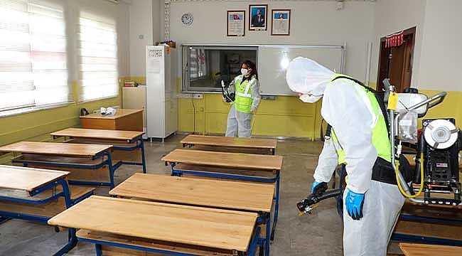 2 ekip halinde yürütülen çalışmalarda kazan daireleri de dahil olmak üzere lavabolar ve sınıflar ile okulun her noktası dezenfekte ediliyor. Böylece özellikle öğrencilerin dokunabileceği yerler özel ürünlerle hijyenik hale getirilmiş oluyor.