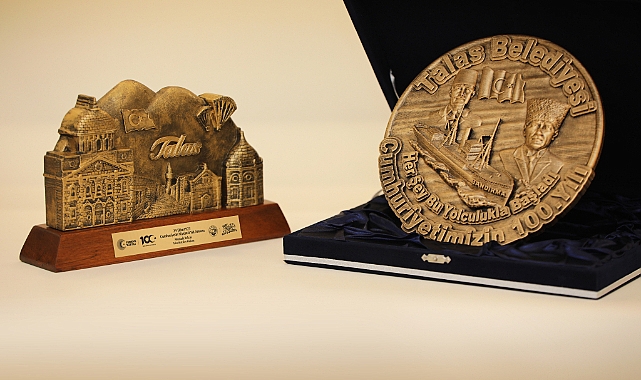 Talas Belediyesi, Cumhuriyetin 100. yılına özel hatıra ürünler hazırladı. Cumhuriyet coşkusunu dolu dolu yaşayan Talas Belediyesi, günün anlamına ithafen 100. yıl temalı plaket, magnet ve biblo yaptırdı.