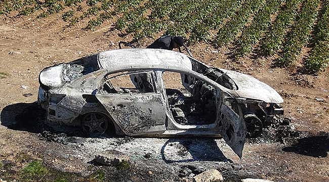 Adana’da, tarlada yanarak, kullanılamaz hale gelen otomobil bulundu. Plaka belirlenemezken, araç çevresinde boş av tüfeği kartuşları ele geçirildi.