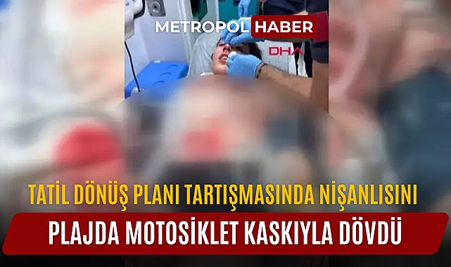 Tatil dönüş planı tartışmasında nişanlısını plajda motosiklet kaskıyla dövdü