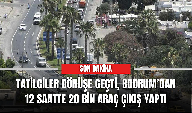 Muğla'nın Bodrum ilçesinde, 9 günlük Kurban Bayramı tatilinin 6'ncı gününde tatilciler dönüşe geçti. Son 12 saatte 20 bin araç çıkış yaptı. Kentin çıkışında ve Bodrum-Milas istikametinde uzun araç kuyrukları oluştu.