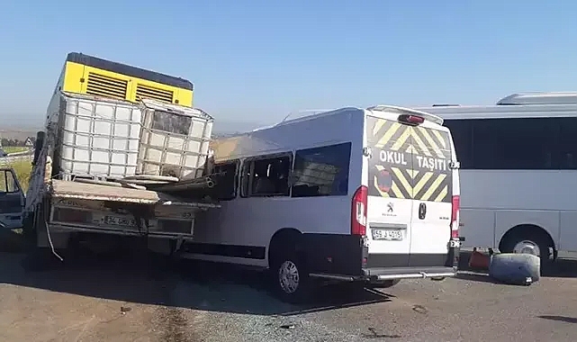 Tekirdağ'ın Saray ilçesinde kamyonet, kırmızı ışıkta bekleyen midibüs ile minibüse çarptı. Kazada kamyonet sürücüsü ile işçi servis araçlarındaki 17 kişi yaralandı.
