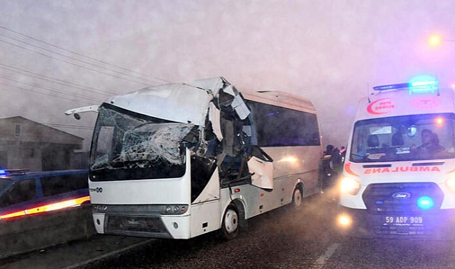 Kaza, sabah saatlerinde Ulaş Mahallesi'nde meydana geldi. Fabrika işçilerini taşıyan Emrah Y. idaresindeki 59 S 1602 plakalı midibüs, sis nedeniyle görüş mesafesinin düştüğü kavşakta Necmi İ.'nin kullandığı 39 EP 326 plakalı TIR'a arkadan çarptı. Kazada midibüsteki 12 işçi yaralandı. İhbarla gelen sağlık ekiplerince hastaneye kaldırılan yaralıların durumunun iyi olduğu belirtildi. Kazaya ilişkin soruşturma başlatıldı.