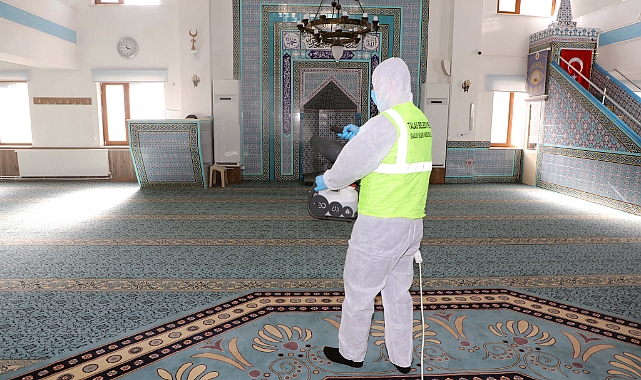 Ayrıca soluma yoluyla bulaşabilecek virüs ve bakteri kaynaklı hastalıklara karşı da cami içleri özel olarak ilaçlarla korunuyor.