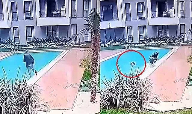 Bursa’da bir kargo çalışanı, ürün teslim etmek için girdiği lüks sitede yüzme havuzuna düştü. O anlar, güvenlik kamerasına yansıdı.