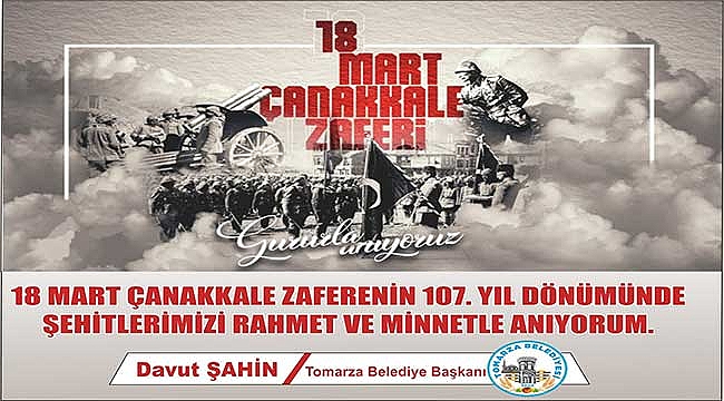 Tomarza Belediye Başkanı Davut Şahin, 18 Mart 'Çanakkale Zaferi' dolayısıyla bir mesaj paylaştı. Başkan Şahin:" Çanakkale Zaferimiz, millet olarak bir araya gelmenin destanıdır. 18 Mart Şehitler Günü ve Çanakkale Zaferinin 107. yılı dolayısıyla başta gazi mustafa kemal atatürk olmak üzere tüm şehit ve gazilerimizi saygı ve minnetle anıyoruz." dedi.