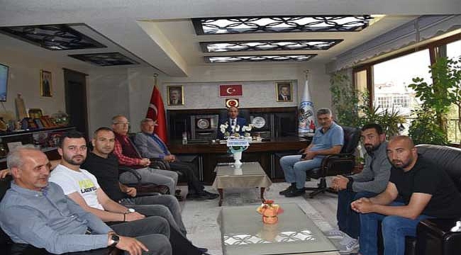 Tomarza Belediyespor yöneticileri ve sporcuları Tomarza Belediye Başkanı Davut Şahin'e geçmiş olsun ziyaretinde bulundu.