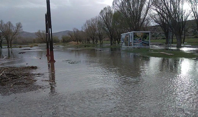 Kayseri’nin Tomarza ilçesinde etkili olan sağanak yağışların ardından Zamantı Irmağı’nın debisi yükseldi.