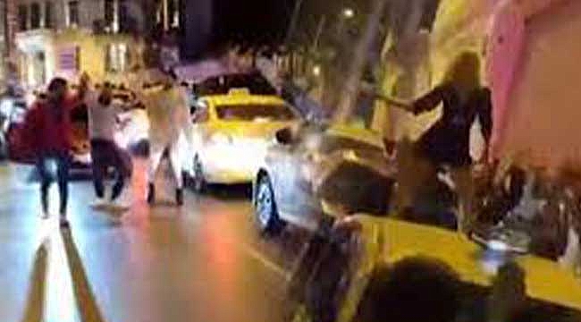 Taksim'de bir grup otomobilleriyle yol kapatıp yüksek sesli müzik eşliğinde dans etti. O anlar cep telefonu kameralarına yansıdı.