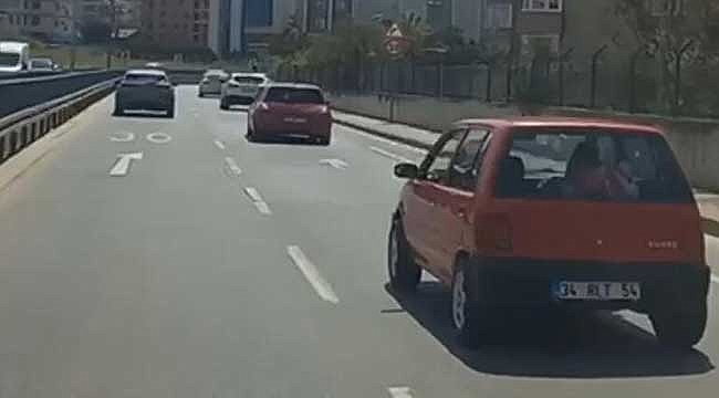 Maltepe'de çocuğun caddede otomobil sürdüğü anlar diğer sürücüler tarafından cep telefonu kamerasıyla kaydedildi.