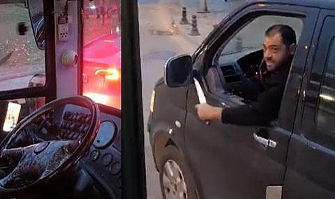 Ankara'da bir minibüsün sürücüsü, trafikte çıkan tartışma sonrası özel halk otobüsü şoförüne hareket halindeyken camdan bıçak salladı, ardından ise aracından inerek bıçak çekerek tehditler savurdu. O anlar bir yolcu tarafından cep telefonu kamerasıyla kaydedildi.
