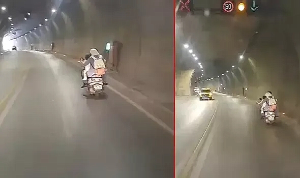 Amasya'da 1’i çocuk 3 kişilik ailenin motosiklet üzerindeki tehlikeli yolculuğunu bir sürücü cep telefonuyla kaydetti .Amasya'daki görüntüler kentte bulunan Ferhat Tünelinde kaydedildi. Tehlikeli yolculukta bir çocuğun annesinin kucağında olduğu görüldü. Aile tünelde hem kendi hayatlarını hem de trafiği tehlikeye attıktan bir süre sonra gözden kayboldu.