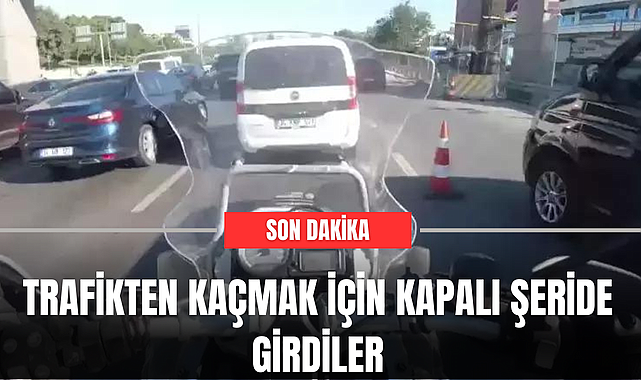 Trafikten Kaçmak İçin Kapalı Şeride Girdiler