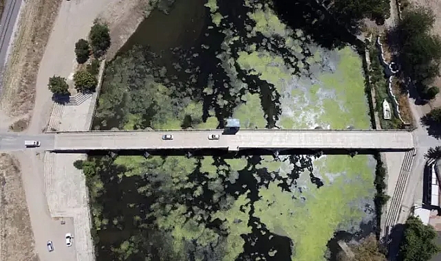 Tunca Nehri'nde debi düştü, nehir yosunlarla kaplandı