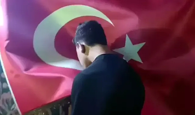 Türk bayrağına saldıran şüpheli bayrağı öpüp özür diledi