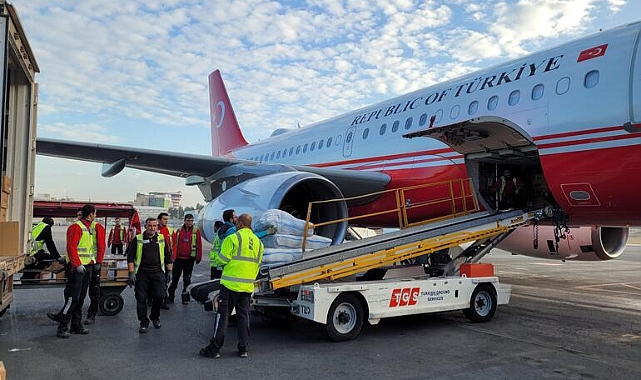 Sağlık Bakanlığı'nca, Gazze'deki sivillere sağlık desteği vermek için görevlendirilen 20 kişilik uzman ekip ile hazırlanan ilaç ve tıbbi malzemeler, Mısır'a gitmek üzere Esenboğa Havalimanı'ndan havalandı.
