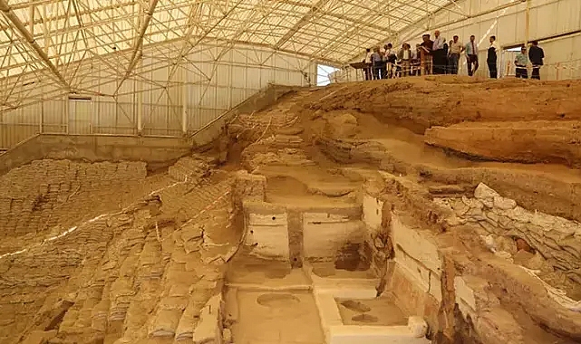 Konya’da, UNESCO Dünya Kültür Miras Listesi’nde yer alan, ilk yerleşim yerlerinden 9 bin yıllık Çatalhöyük’teki tanıtım ve karşılama merkezine gelen ziyaretçiler, teknolojik ortamda 9 bin yıl öncesine giderek neolitik dönemi deneyimliyor. Merkezin sorumlusu arkeolog Gülsün Ergen, “Merkezde sergi salonları var. Bu salonlarda interaktif ekranlar yer alıyor. Bu ekranlar da Türkçe ve İngilizce dilleriyle desteklenmekte. Sergi salonlarında o dönemin bitki örtüsü, hayvan türleri, yaşam biçimleri, mimarisi gibi konular başlığı altında gelen ziyaretçiye bilgiler sunmaktayız. 2’nci sergi salonumuzda bir animasyonumuz var ve ziyaretçilerimizi günümüzden 9 bin yıl öncesine götürüyoruz” dedi.Çumra ilçesindeki Çatalhöyük Neolitik Kenti'nde, insanlığın gelişiminde önemli evre olan yerleşik toplumsal hayata geçişle birlikte tarımın başlangıcı ve avcılık gibi önemli sosyal değişim ve gelişmelere tanıklık edildi. 14 hektarlık alan üzerinde 2 höyükten oluşan Çatalhöyük'ün daha uzun olan Doğu Höyüğü, M.Ö. 7400 ve 6200 yılları arasına tarihlenen 18 neolitik yerleşim katmanından oluşuyor.