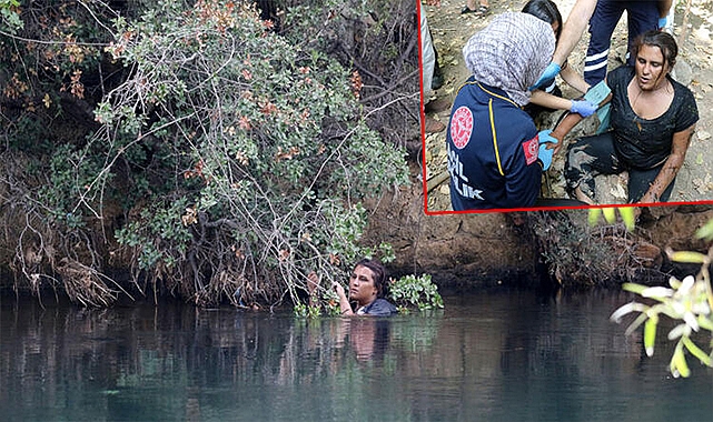 Antalya'da, kanal üzerindeki kayalıklara giden Esengül Yeneç (23), ayağının kaymasıyla 10 metre yüksekten suya düştü. Bir ağaç dalına tutunan Yeneç, yarım saat sonra itfaiye ekipleri tarafından kurtarıldı.