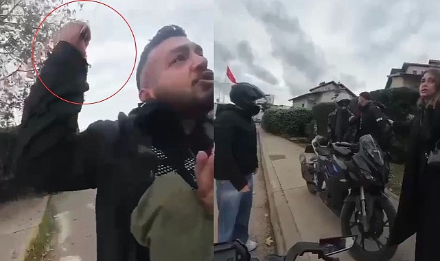 Tuzla’da yol kenarında oyuncak silahla şakalaşan motosikletli grubun yanından kız arkadaşıyla geçen başka bir motosikletli, silahı gerçek sanarak durdu. Olayın şaka olduğunu fark eden motosikletli, bu kez yanındaki bıçağı çıkararak gruptakileri tehdit etti. Yaşananlar motosiklet sürücüsünün kask kamerasına yansıdı.
