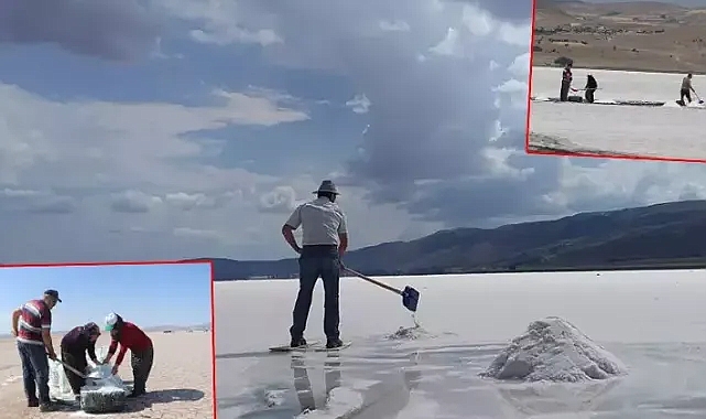 Gölde batmamak için kendi geliştirdiği 'helik' adını verdiği tahta ayakkabıları giydiğini söyleyen Ferdi Varol, “12 yaşından beri tuz çıkarıyorum. Mahalleden arkadaşlar ve komşularımız ile yıllardır tuz çıkarıyoruz. Ayağımıza helikleri giyip, çıkardığımız tuzu da kızağa koyup gölün kenarına taşıyoruz. Peynir, hamur ve turşu da kullanılıyor. Yörede yemeklere de kullanıyoruz. Sabah 04.30’da mahalleli olarak geliyoruz, 10.00’da da işimizi bitirip gidiyoruz. Geçen sene tuz olmadığı için bu yıl tuz daha kıymetli oldu. Biz de tuz çıkarmayı özlemiştik. Bu tuz peynirlerde çok kullanıldığı için peyniri cıvıtmama özelliği var. O yüzden şimdi peynir sezonu olduğu için köylerde müşterilerimiz beni bekliyor. 1 haftadır hasat yapıyorum. Günlük 10 torba tuz çıkarıyorum. Bazılarının da suyunu çekmesi için burada bırakıp ertesi gün alıyorum. Günlük 500 kilogram hasat yapıyorum” diye konuştu.