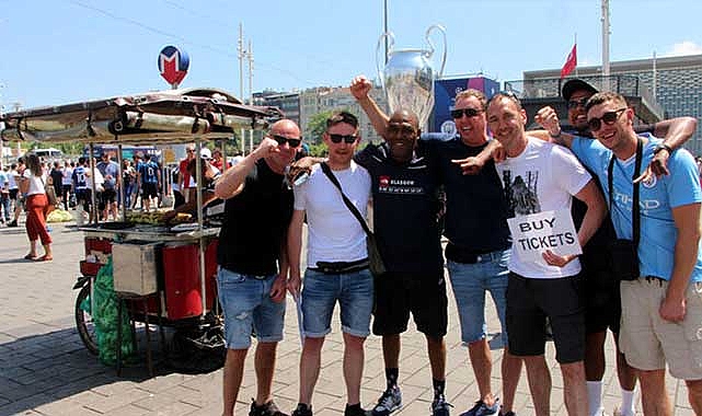UEFA Şampiyonlar Ligi Finaline saatler kala Manchester City ve Inter taraftarları Taksim Meydanı'na akın etti. Bazıları meydanda kurulan ses sistemi ile coşarken bazıları da bilet bulma telaşına girdi. Bileti olmayan taraftarlar ellerinde ve boyunlarında İngilizce ve İtalyanca bilet aradıklarını belirten yazılar taşıdı. Taraftarlar maç saati yaklaşınca Olimpiyat Stadı'na doğru yola çıkacak.