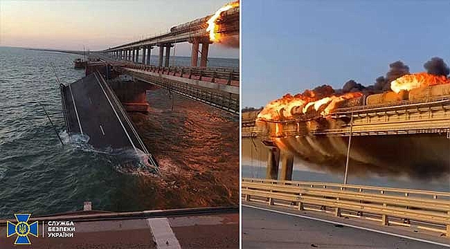 İşgal altındaki Kırım yarımadası ile Rusya arasındaki tek geçiş noktası olan Kerch Köprüsü’nde bugün sabah erken saatlerde büyük bir patlama meydana geldi. Zelenski’nin danışmanı Podolyak, olayı “Kırım. Köprü. Başlangıç” sözleriyle duyurdu.