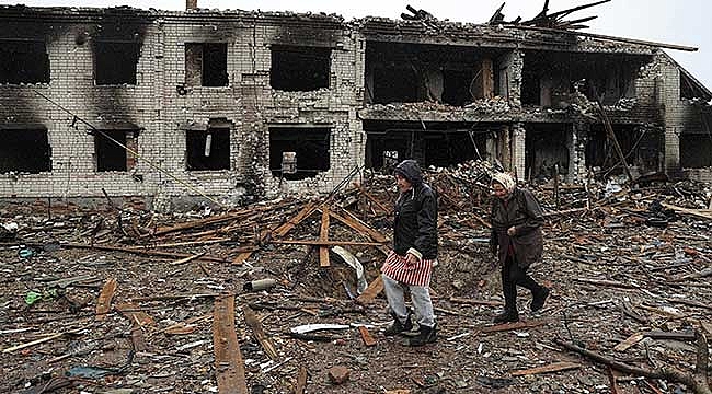 Başkent Kiev’e yaklaşık 130 kilometre uzaklıkta, Belarus sınırına yakın kentteki binalarda özellikle hava bombardımanları izleri dikkati çekiyor.