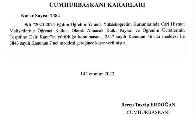Resmi Gazete'de yayımlanan karara göre üniversite harçları geri getirildi.Yeni karara göre birinci öğretim öğrencileri de üniversite okumadan önce ödeme yapmak zorunda kalacak.https://www.metropolhaber.net/normal-ogretimler-in-harc-ucreti-ne-kadar-olacak/210336/