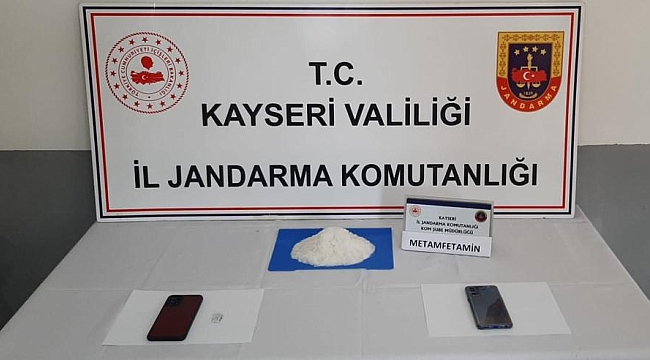 Kayseri'de jandarma ekipleri tarafından yapılan uyuşturucu operasyonunda 1 kişi yakalandı. Şüphelinin üst aramasında beline sarılı halde yarım kilo civarında uyuşturucu metamfetamin ele geçirildi.