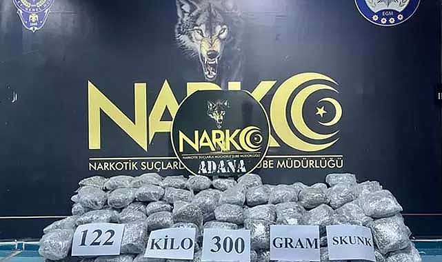Adana'da narkotik polisi, sürücüsünün 'dur' ihtarına uymadığı kamyoneti kilometrelerce takip edip, lastiğini tabanca ile patlatarak durdurdu. Kamyonette 122 kilo 300 gram skunk ele geçirildi; gözaltına alınan sürücü Sedat G. (46) ile yanındaki Celal D. (56) tutuklandı.