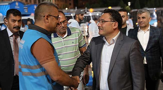 Kayserililerin Kurban Bayramını daha sağlıklı ve daha temiz bir şekilde idrak edebilmesi için bayram öncesi temizlik çalışması gerçekleştiren Kocasinan Belediyesi Temizlik İşleri Müdürlüğü ekiplerine sürpriz yapan Kayseri Valisi Gökmen Çiçek, işçilere kolaylıklar diledi. Onlarla tek tek sohbet edip, yakından ilgilenen Vali Gökmen Çiçek, işçilere hitaben; “Rutin temizliğin yanı sıra bayram temizliğine başlıyorsunuz. Her birinizin emeğine sağlık. Allah razı olsun. İnşallah bayramı da kazasız, belasız geçiririz. Gecenin bu saatinde vatandaşlarımızın daha temiz bir ortamda yaşaması için mücadele ediyorsunuz. Daha temiz Kayseri ve Kocasinan için çalışıyorsunuz. Bende mesaiyi bırakırken sizlerin görevi başınızda görünce çok mutlu oldum. Allah hepinizden razı olsun. Sizlere çok teşekkür ederim. Pırıl pırıl bir Kocasinan bıraktığı için başta Kocasinan Belediye Başkanımız Ahmet Çolakbayrakdar olmak üzere Kocasinan Belediyemize teşekkür ediyorum” ifadelerini kullandı.