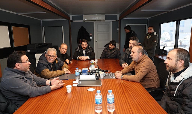 Afetin yaşandığı Kahramanmaraş’ta temaslarda bulunan Başkan Büyükkılıç, beraberindeki heyet ile Kayseri Valisi Gökmen Çiçek’i AFAD Mobil Afet Etüt Merkezi’nde ziyaret etti.