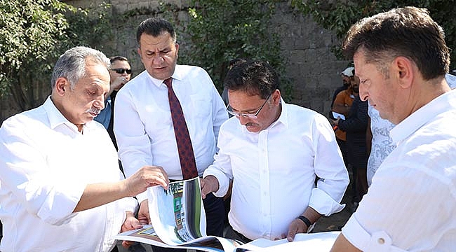 Kayseri Valisi Gökmen Çiçek, Talas Belediye Başkanı Mustafa Yalçın ile birlikte ilçede