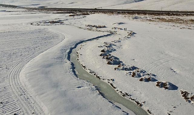 Gece sıfırın altında 16 dereceye kadar düşen hava sıcaklığı nedeniyle ilçedeki akarsuların yüzeyi dondu. Tepedam Mahallesi'nde kilometrelerce uzanan menderesler ise karlar arasındaki buz tutmuş haliyle güzel manzara oluşturdu.
