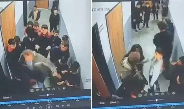 Van'ın Edremit ilçesinde bir veli, çocuğuna kar topu attığını iddia ettiği 8 yaşındaki öğrenciyi okul koridorunda diğer öğrencilerin gözü önünde darbetti. O anlar güvenlik kameralarına yansıdı.