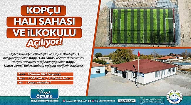 Yahyalı Belediyesinin sosyal medya hesabından yapılan paylaşımda, “Kayseri Büyükşehir Belediyesi ve Yahyalı Belediyesi iş birliğiyle yaptırılan Kopçu Halı Sahası ve çevre düzenlemesi ve Yahyalı Belediyesi tarafından yaptırılan Kopçu Nimet-İsmail Bulut İlkokulu açılışına teşrifleriniz bekleriz” denildi.