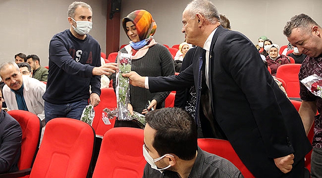 Tüm sağlık çalışanları gıyabında Hastane Başhekimi Uzm. Dr. Muhammed Mustafa Özdemir’e çiçek hediye eden Yahyalı Kaymakamı Metin Eyyüpkoca, burada yaptığı konuşmada; “ Tüm sağlık çalışanlarının 14 Mart Tıp Bayramını kutluyorum. Sağlıklı bir toplum, hiç kimsenin vazgeçemediği temel haklardan biridir. Etkili bir tıp sistemi sağlıklı bir toplumun temel niteliğidir. Önce insan anlayışının benimsendiği günümüzde, herkesin en iyi hizmeti hak ettiğini düşünüyorum. Bunun neferleri sizlersiniz. Son yıllarda yaşanan pandemi sürecinde hayatlarını hayat kurtarmaya vakfeden, zaman ve mekân belirtmeden mesai mefhumu gözetmeden, bizlerin daha sağlıklı daha mutlu bir hayat sürdürmemize vesilen olan sizlere teşekkür ediyorum. Bu vesileyle Tıp Bayramınızı kutluyor, çalışmalarınızda başarılar diliyorum.” Diye konuştu.