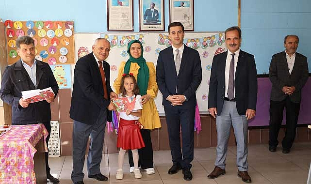Yahyalı Belediye Başkanı Esat Öztürk, İlçe Kaymakamı Mehmet Kaya ve İlçe Milli Eğitim Müdürü Ahmet Kafalı ile birlikte Cumhuriyet İlkokulu'nda öğrencilerin karne sevinçlerine ortak oldular.