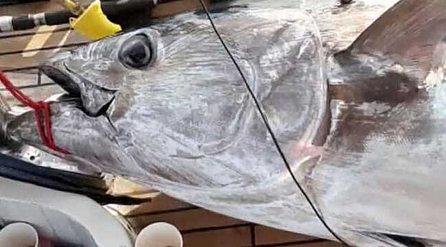 Antalya'da bir grup balıkçı, avlanmak için çıktıkları Beldibi açıklarında 100 kiloluk orkinos yakaladı. Balıkçılar, balığı 2 saat 50 dakikada tekneye çıkarabildi, o anlar cep telefonu kamerasına yansıdı.